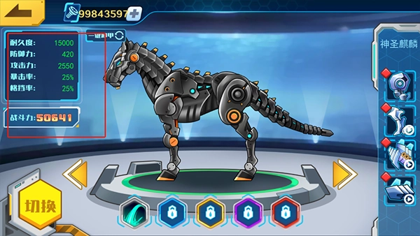 在机甲仓库里,你能查看所有机甲,部分机甲得收集够一定数量的碎片才可以解锁,这时候用零件升级已拥有的机甲,提升战力后,去挑战兽王争霸或者每日副本。