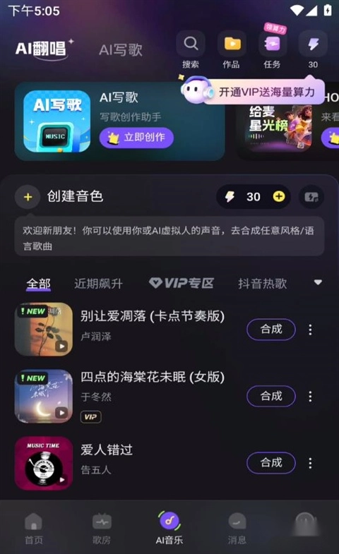 一键生成专属歌声,AI翻唱助你轻松切换多元音乐风格,解锁更多曲风和曲库,你就是百变歌王。
