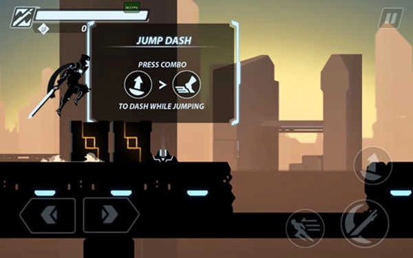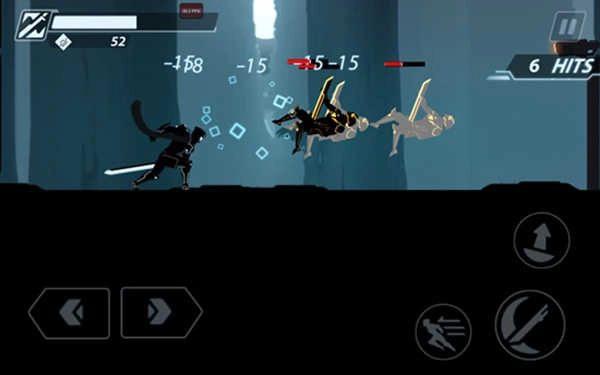 进入游戏后,界面会直接切换到操作界面。屏幕左下角是移动按钮,用于控制角色左右移动;右下角则设有攻击、跳跃和瞬移按钮,点击这些按钮就能触发对应的动作。