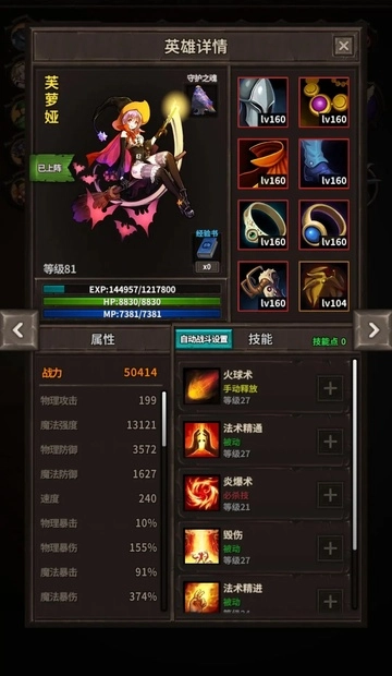 2.自动战斗技能四个火球术+必杀技炎爆术