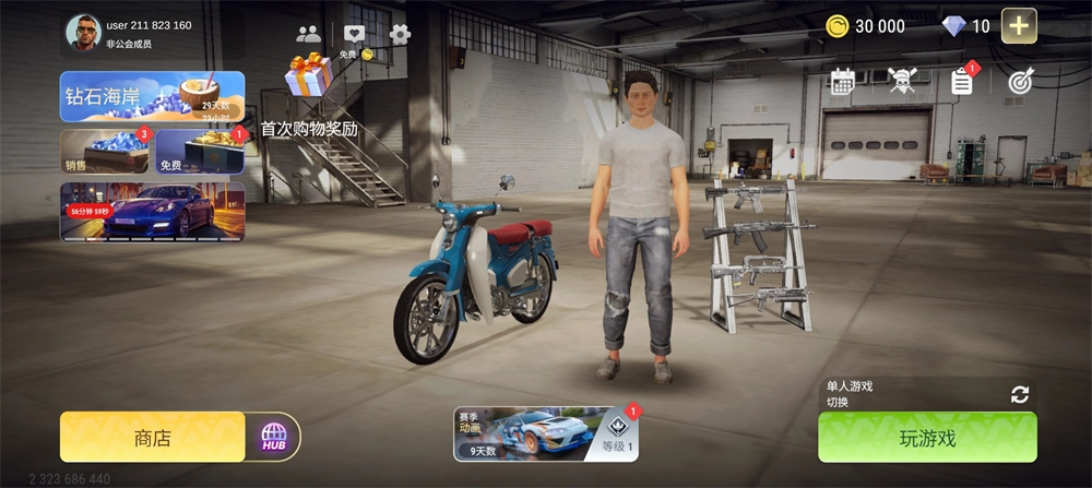 1首先打开游戏,接着选择以游客身份登录。待成功进入游戏主界面后,点击“开始玩游戏”按钮。