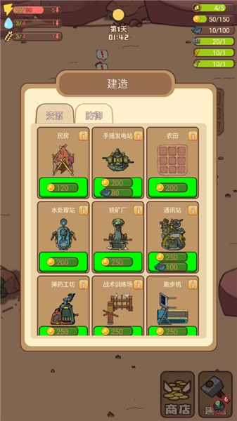3、除了资源外,还需要建造防御设施,以此来抵御僵尸的入侵。