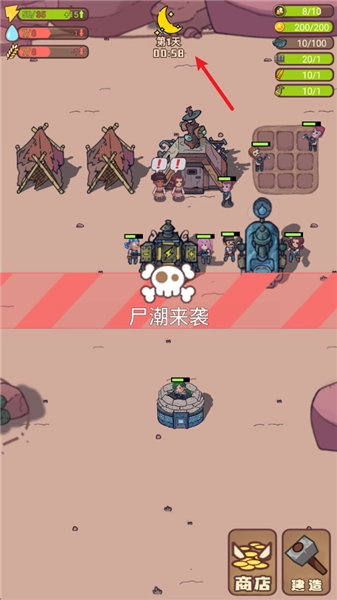 3、到了晚上,尸潮将接连不断地涌来。此时,玩家需要巧妙地布置防线,并安排居民进行驻守,从而构建起坚不可摧的防御体系。