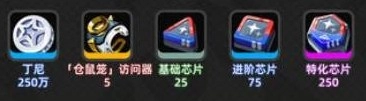 3、全技能:丁尼250万、「仓鼠笼」访问器5、基础芯片25、进阶芯片75、特化芯片250。