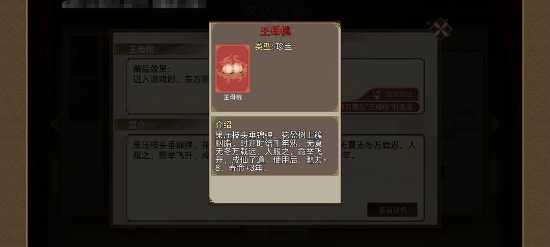 (1)[东方朔]开局或携带名臣[东方朔],用[副职:商人]在[东方朔]处购买[王母桃]。