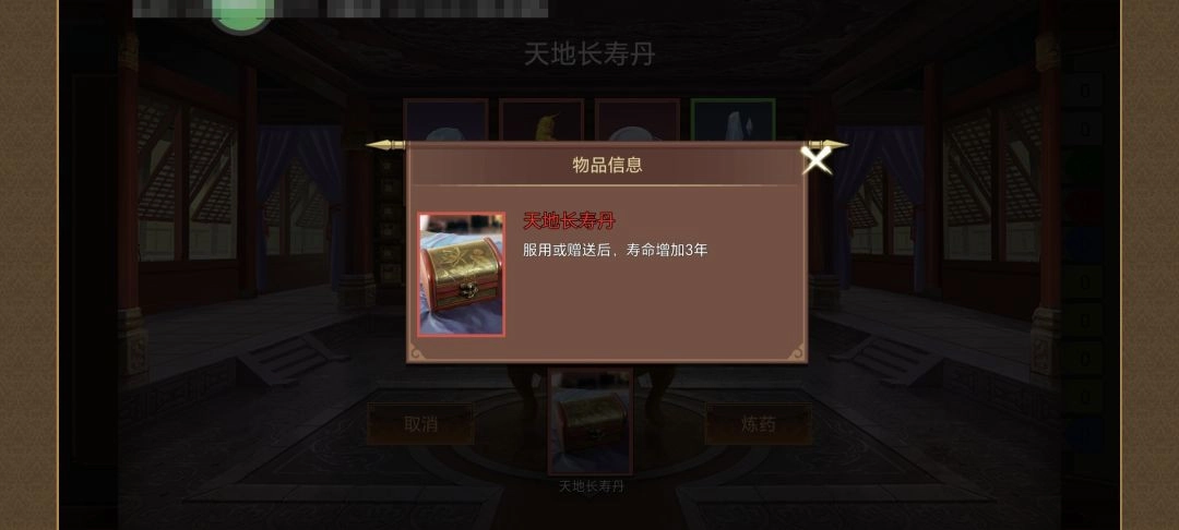 (2)皇帝线,宣政殿→礼部→外交→奥斯曼帝国→外交→召见使臣→索要纳贡→索要宝物,选择[破损药方·八],可获得[天地长寿丹](药方),背包使用后可在西殿→青炉房,需要自行炼制。
