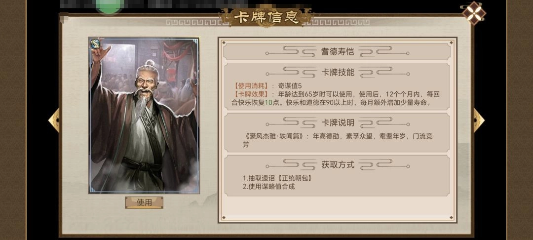 (1)需5点奇谋值,年龄达到65岁以上可使用。