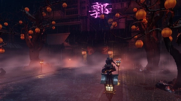 本作在画面上延续了系列赛博科技与日式神话相融合的独特风格。上层都市保留赛博朋克标志性元素:霓虹广告牌在连绵雨幕中折射出蓝紫光晕,机甲忍者的金属外壳泛着冷硬光泽。下层废墟则渗透日式妖异感:神社鸟居被瘴气侵蚀出焦黑纹路,魔物鳞片在阴影中闪烁幽绿磷光。两种风格的极致融合形成了强烈视觉反差,营造出了一种超脱现实的异界氛围。