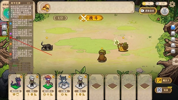 游戏里的卡牌英雄各自拥有独特的羁绊效果,玩家只需点击左侧区域,就能查看羁绊的具体属性,进而自由进行搭配组合。