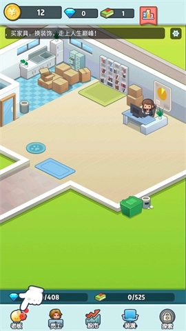 作为公司老板,首要任务是培养赚钱的能力。由于游戏操作简单,玩家只需快速点击屏幕就能获得收益。