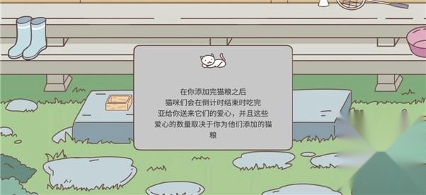 你添加完猫粮后,猫咪们会在倒计时结束时吃完,然后给你送来爱心,这些爱心的数量是由你添加的猫粮多少决定的。