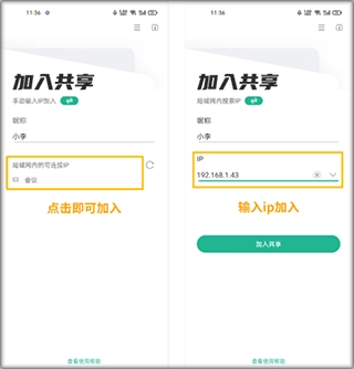 提供加入信息。创建共享后,软件会显示共享的IP地址和相关信息,其他人可以通过输入这个IP地址来加入共享。