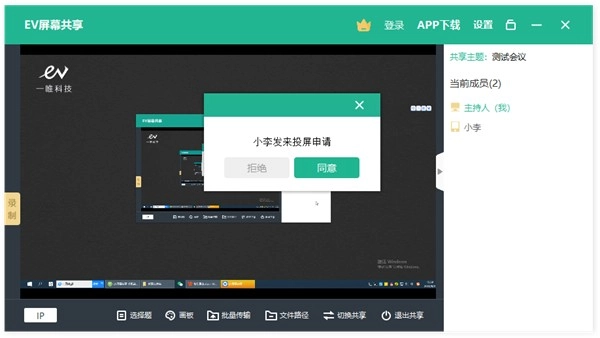 另外,EV屏幕共享还配备了录制、画板、批量传输等互动工具,能够增强会议中的互动性。