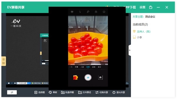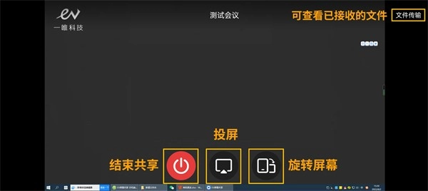 EV屏幕共享支持电脑、手机和平板接入共享会议,其中手机与电脑设备需处于同一局域网环境;在电脑开启共享会议后,手机即可加入该共享会议。