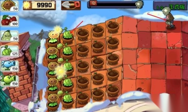 接下来就能有充足的阳光来培育攻击型植物,一旦有僵尸出现,这些植物就会自动发起攻击。