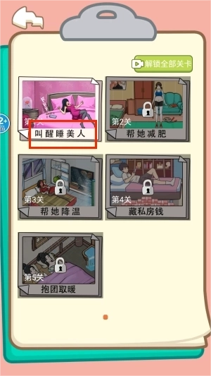 这款游戏包含多个关卡,新手玩家可以选择从“叫醒睡美人”这一关卡开启挑战之旅,当完成该关卡的挑战后,就能解锁后续更多关卡继续游玩。