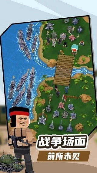游戏画面可爱简约,带来轻松休闲的模拟体验。军事题材与萌元素相融合,采用傻萌的画面风格。