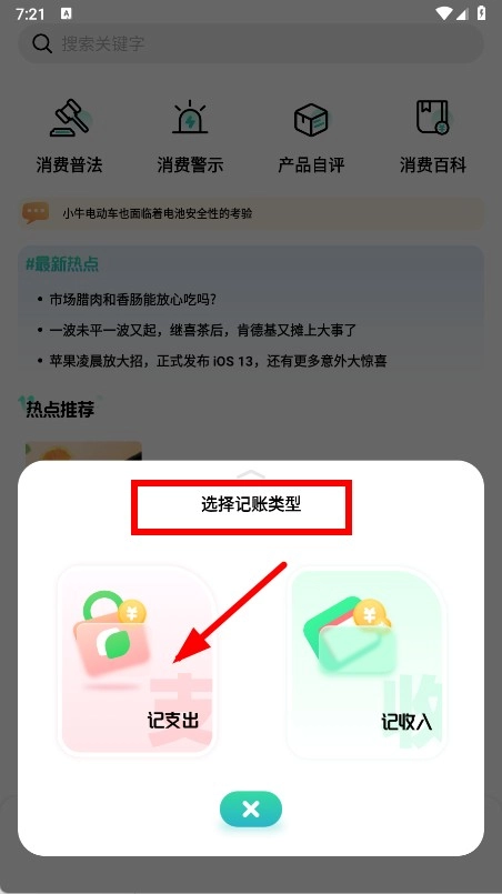 选择记账类型,如记支出。