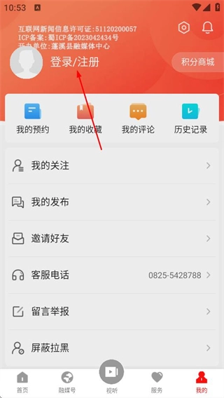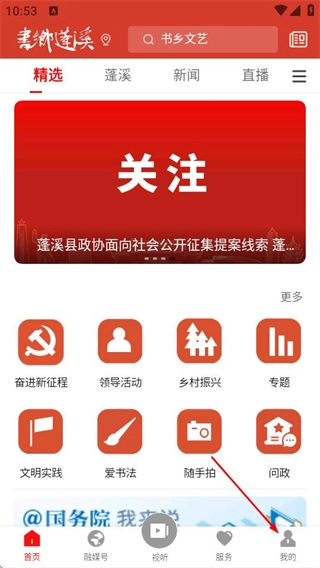 在书乡蓬溪的首页,点击底部的“我的”选项,即可进入个人中心页面。