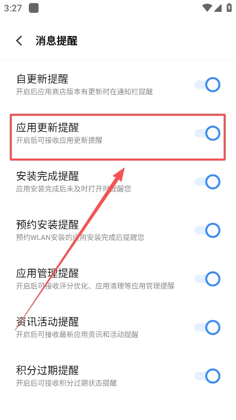 然后关闭应用更新提醒即可完成