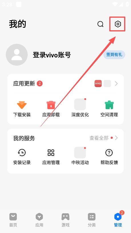 打开vivo应用商店,点击右下角的“我的”选项,即可进入个人中心页面。