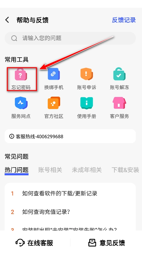 点击帮助反馈。