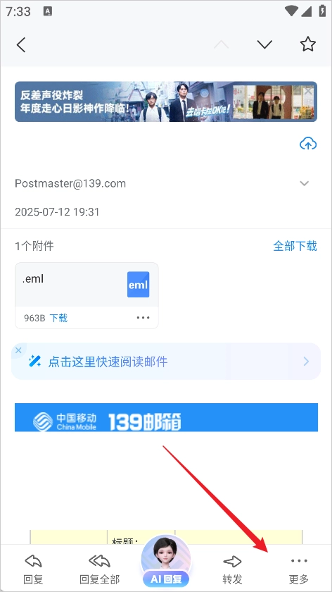 进入邮件内后,点击右下角的更多。