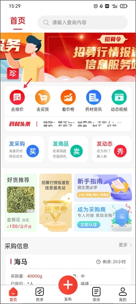 珍药材作为备受青睐的药材采购平台,汇聚了覆盖全国的中药材新行情、种植技术指导、行业资讯解析以及优质货源推荐等丰富多元的视频内容,为每一位中药材领域的视频创作者搭建起广阔的展示舞台,助力他们收获关注与商业机遇。平台配备线上报价功能,能够依据供应商的主营品种,自动精准匹配并推荐适宜的报价品类,有效推动中药材交易双方快速达成合作。此外,采购商还可便捷查询供应商的信用评级,通过在线比价、议价以及筛选报价等操作,高效促成采供合作。