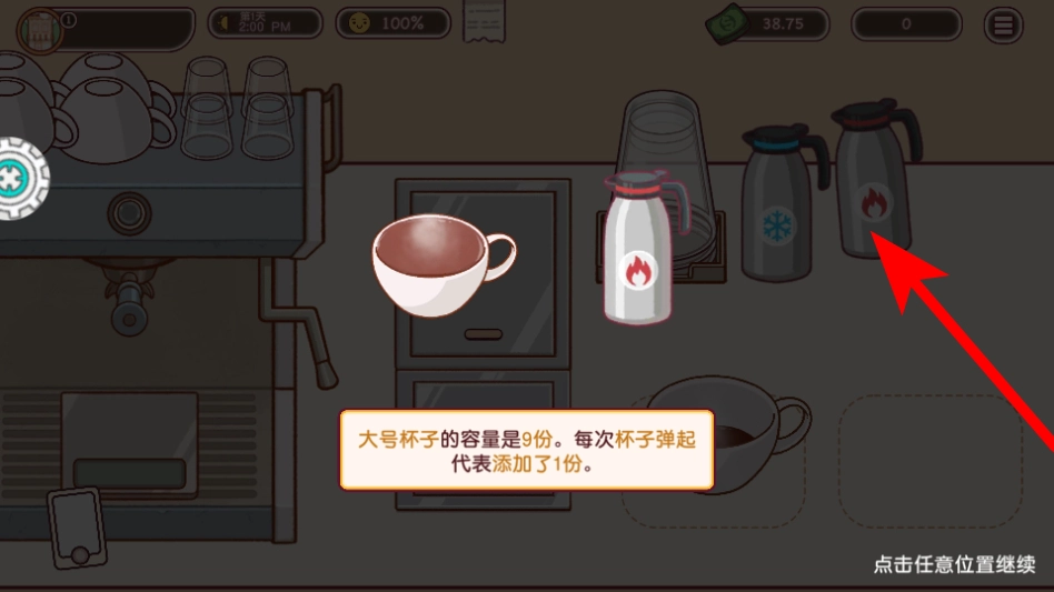 按照提示,使用带有火焰标识的热水壶,往盛有浓缩咖啡的杯子里加入热水,即可完成美式咖啡的制作。