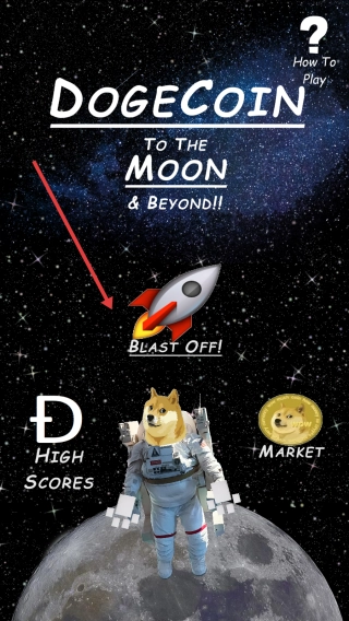 在主界面找到“Blast Off”按钮并点击,即可进入太空场景。在这里,你将操控宇航员狗狗,开启一场既要收集狗狗币、又要躲避陨石的冒险之旅。