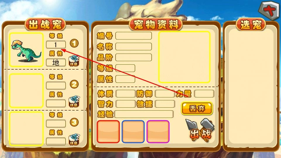 在宠物界面查看并选择出战宠物的资料,就能了解其等级、属性等信息,然后根据需求调整出战宠物的配置。