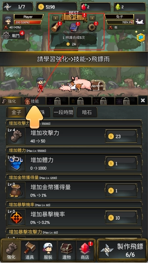 通过收集并合成飞镖,逐步增强攻击力与附加效果,能够有效降低后续关卡的难度,从而提升闯关的效率。