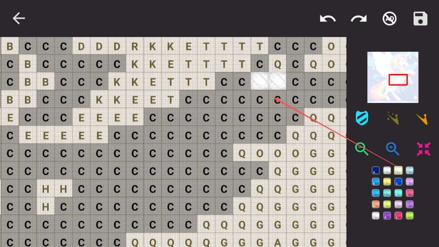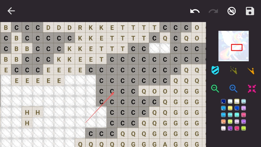 点击方格进行填色,把找到的对应字母所在的方格填充好,慢慢就能拼出目标图案的轮廓。