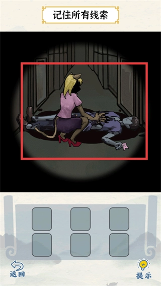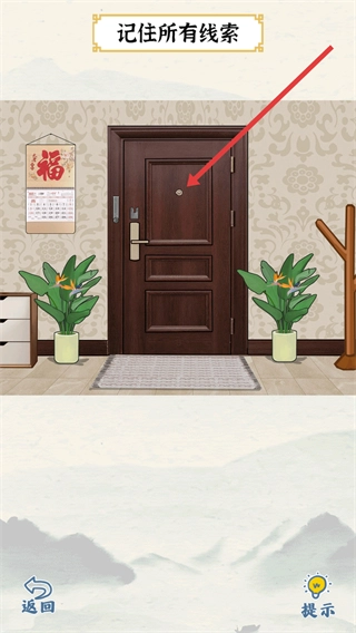 进入场景后,留意“记住所有线索”的提示,点击门上的猫眼查看案发现场。