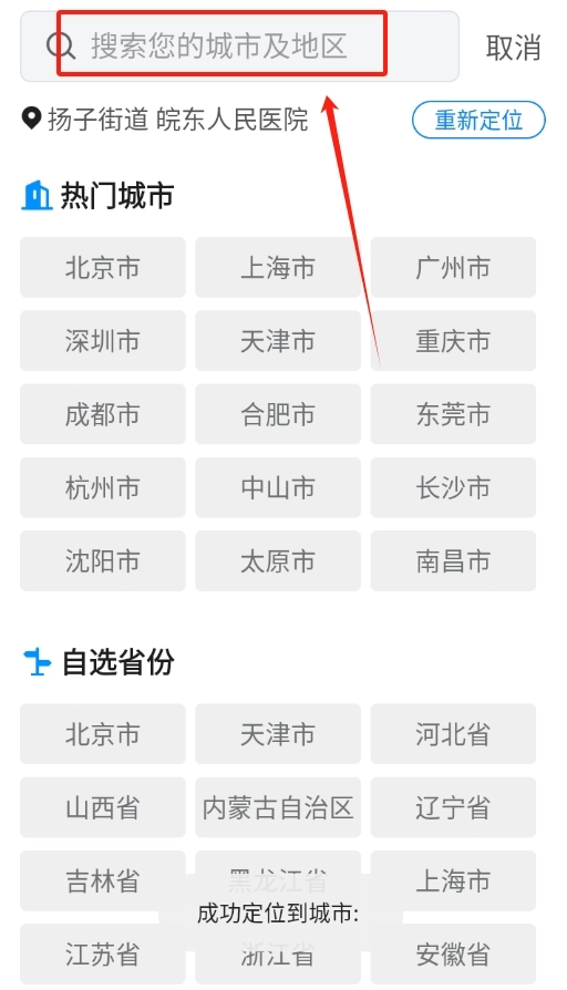 安装七彩好天气应用,启动后进入主界面,接着选择你所在的城市。