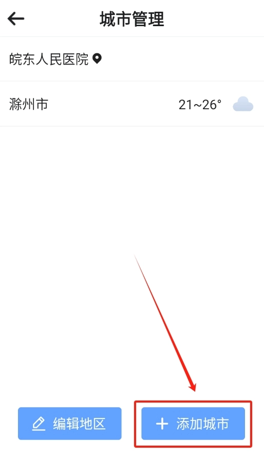 打开软件后直接查看首页,在页面的左上角有一个小小的添加城市按钮,点击这个按钮就可以开始进行相关操作了。