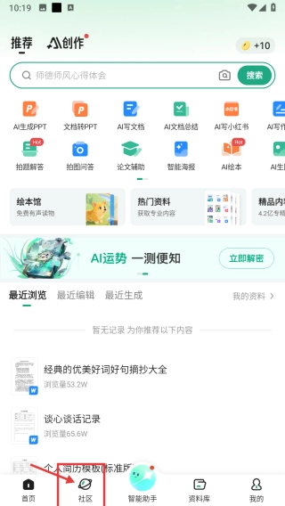 打开内容创作类应用,点击底部的社区选项,进入社区页面。