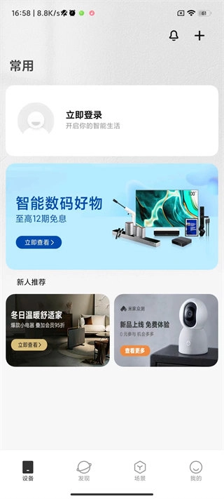 接下来打开手机上的米家应用,在界面的右上角能看到一个加号按钮,点击这个按钮后,就可以选择需要使用的机器人了。