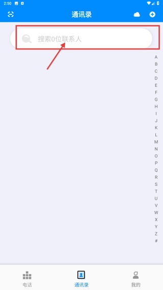 在通讯录页面,点击顶部搜索框。