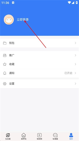 之后可以在个人页面,点击立即登录区域,进入登录页面。