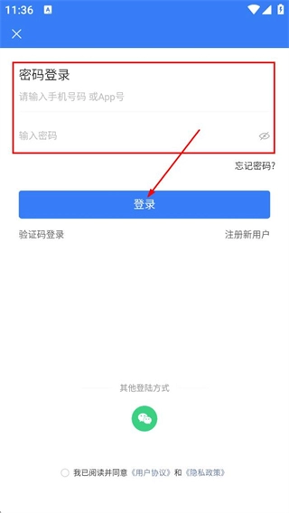 在密码登录页面,依次输入手机号与密码,接着点击登录按钮,即可完成登录流程。