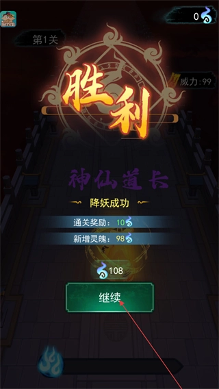 通过第1关后,点击“继续”按钮领取通关奖励,即可进入下一个关卡。