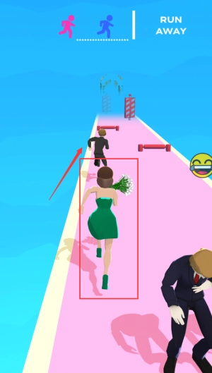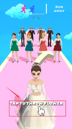 点击屏幕扔出花束,帮助新娘逃脱人群追赶。