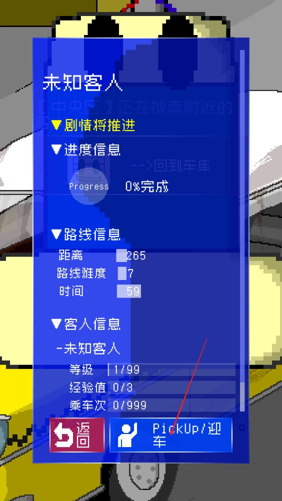 在客人信息界面,点击迎车按钮接单,获取客人路线难度时间等信息,按要求前往指定位置接客。