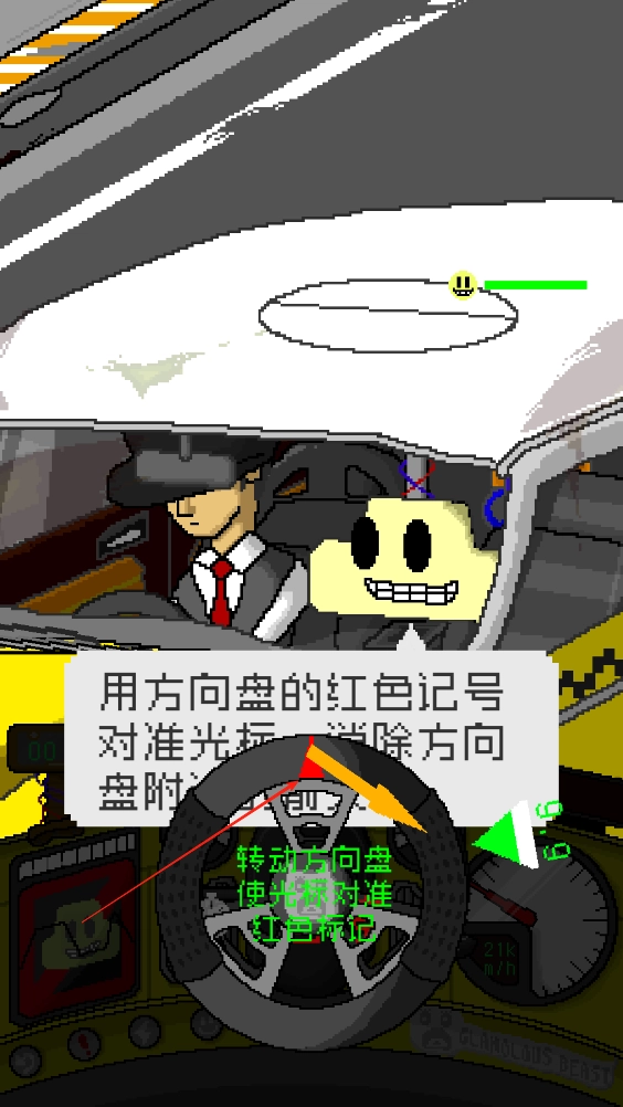 在行驶的时候,我们得持续转动方向盘,让红色记号和绿色光标对齐;绿色光标设有倒计时,必须在倒计时结束前,平稳缓慢地把方向盘转向光标所在的位置。