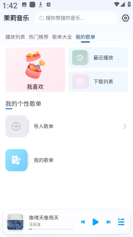 打开茉莉音乐App,点击顶部导航栏里的“我的歌单”选项就可以了。