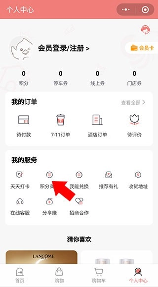 登录之后点击【我的服务】下的积分商城即可。
