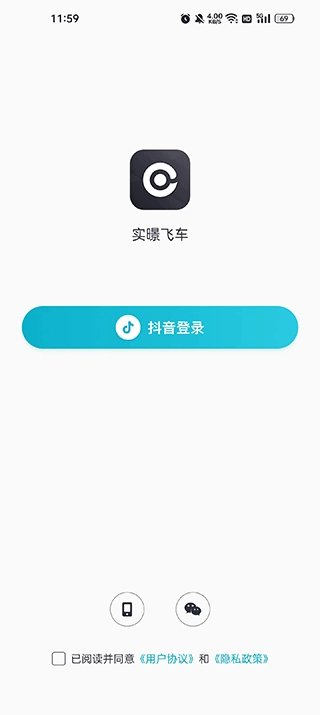 首先安装实暻飞车,安装完成后,可使用抖音账号或微信账号登录。