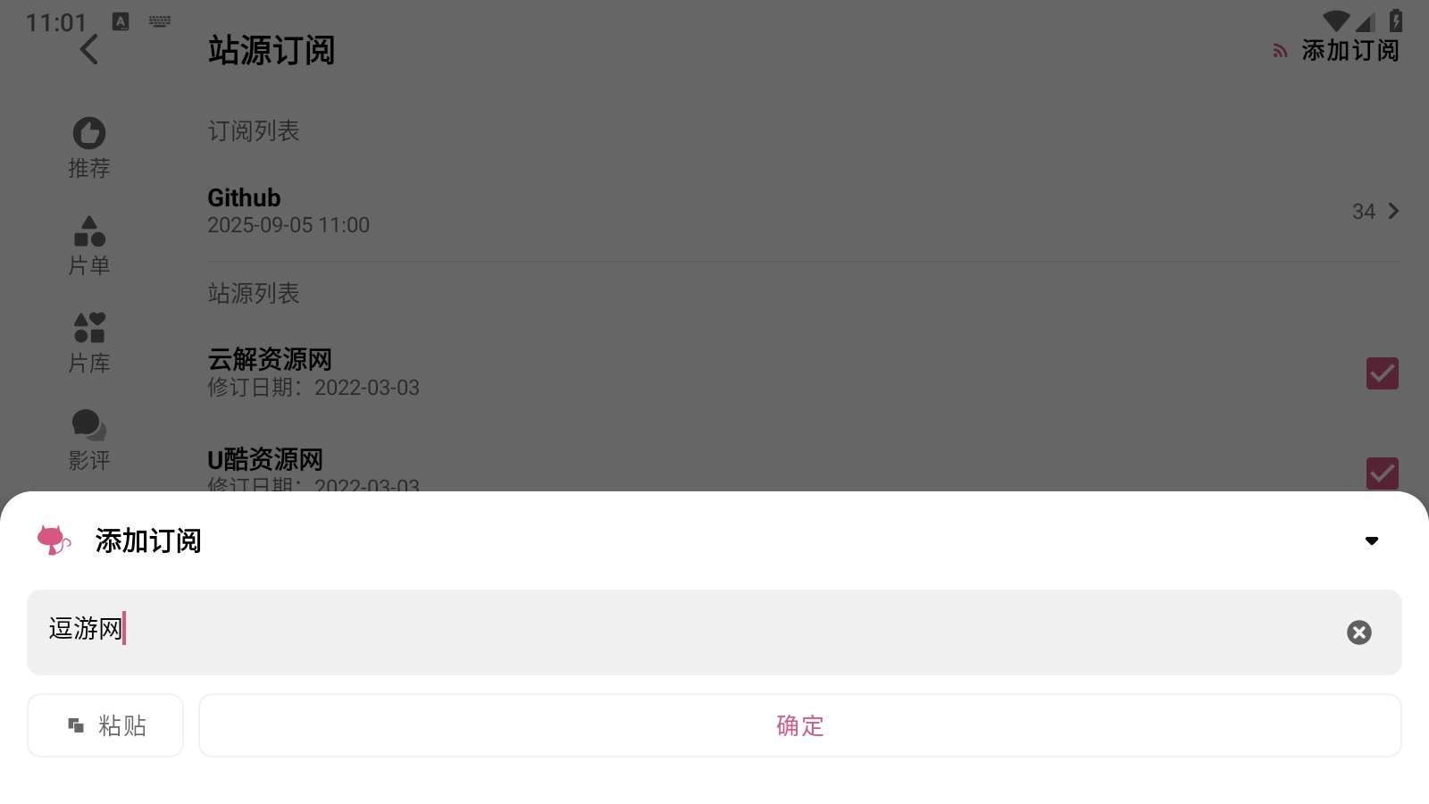 点击站源订阅按钮,还支持自定义添加本地的影视源