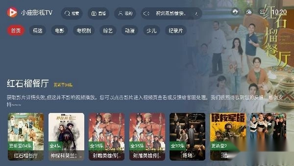 小鹿影视TV是一款能为你提供海量多元电视剧内容的软件,平台内汇聚了电影、电视剧、综艺、纪录片等丰富多样的资源,国内外各类作品一应俱全。软件操作十分便捷,只需通过电视遥控器就能轻松找到想看的节目,播放过程稳定流畅,不会出现卡顿问题,让你尽享舒适的画质体验。